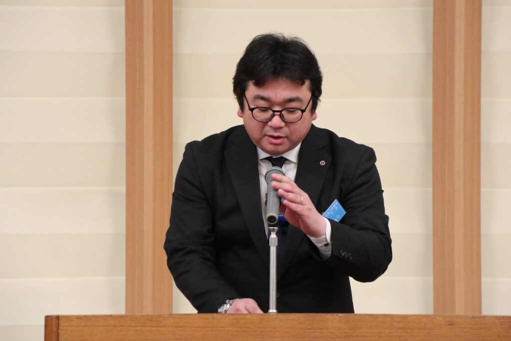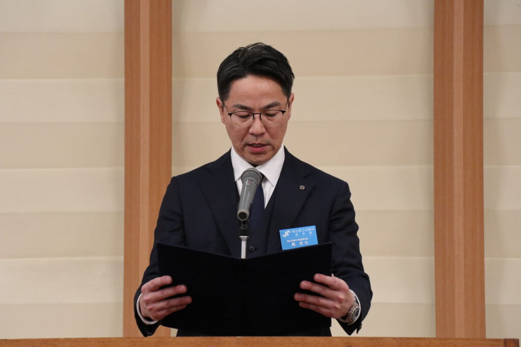 3月臨時総会の閉会宣言は、総務広報委員会 前田 祐介(まえだ ゆうすけ)君です。