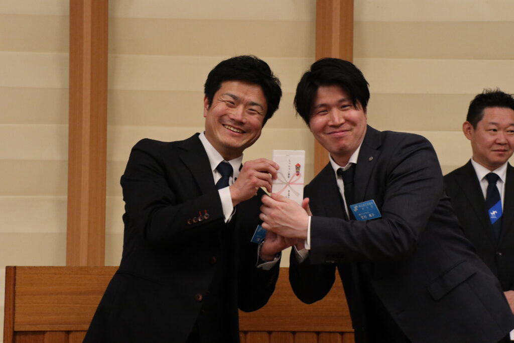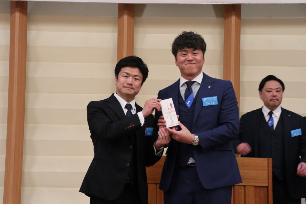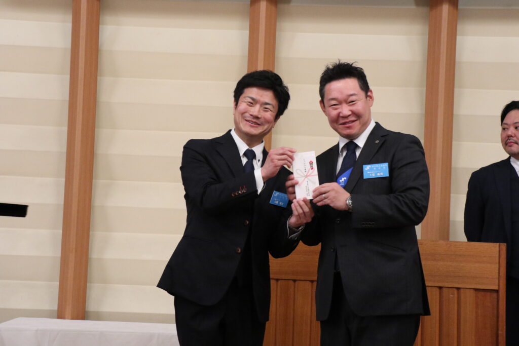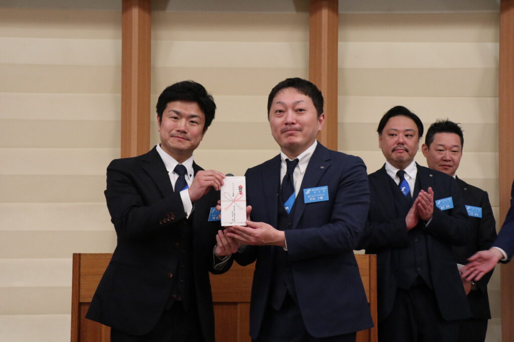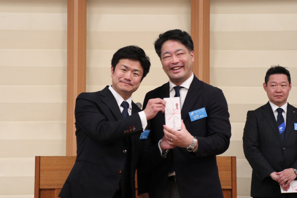 会員拡大事業の発表では、会員を紹介していただいたメンバーへ日置会長より褒賞をいただきました。