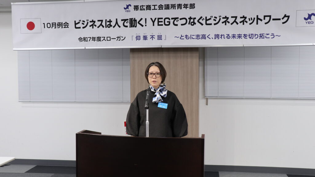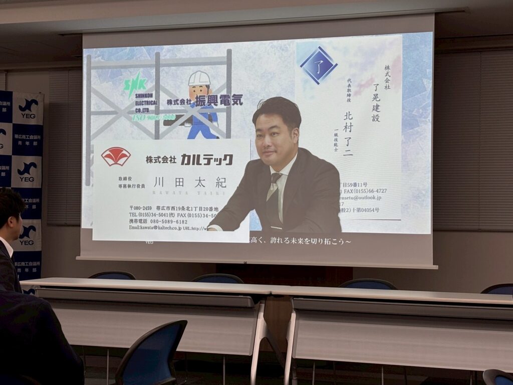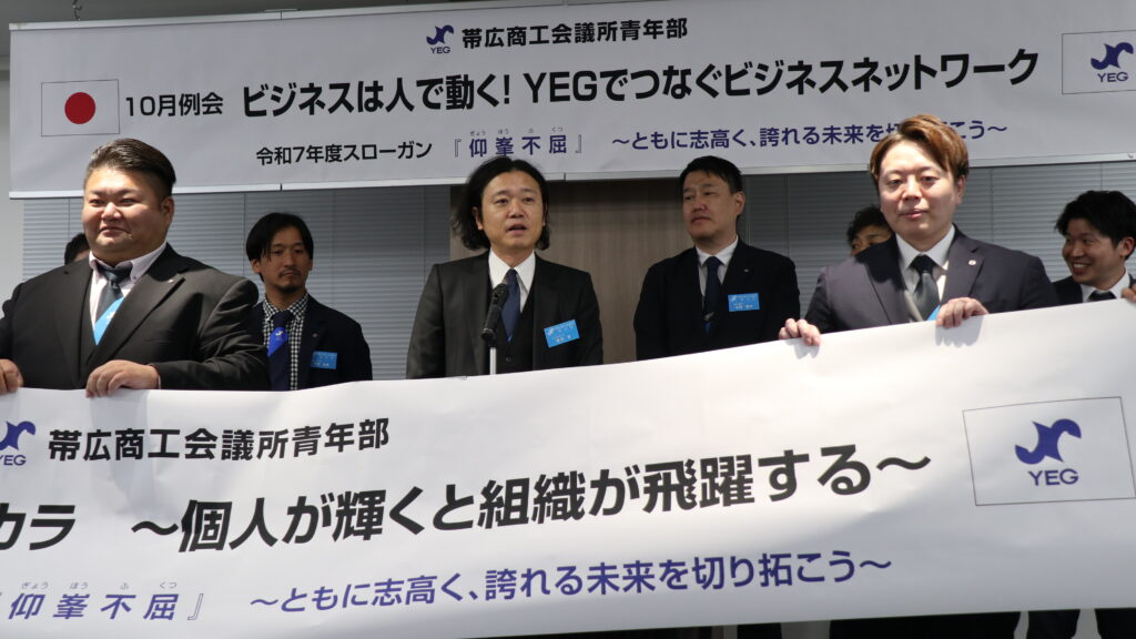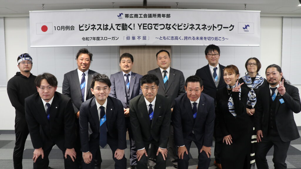 帯広商工会議所青年部は、令和7年10月22日(水)に、「令和7年度10月臨時総会」続いてビジネス交流委員会担当の「10月例会【ビジネスは人で動く!YEGでつなぐビジネスネットワーク】」を帯広経済センタービルにて開催いたしました。