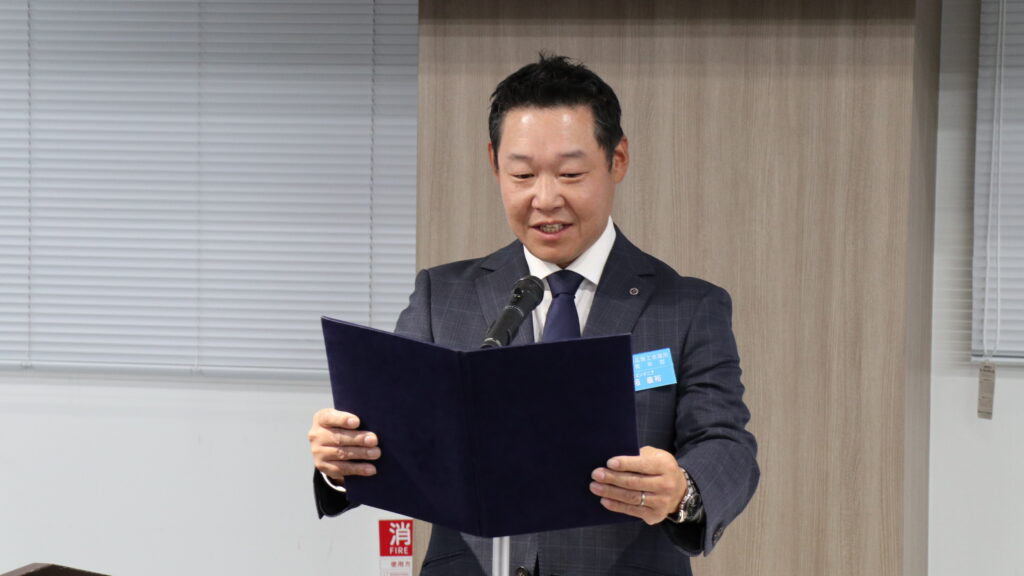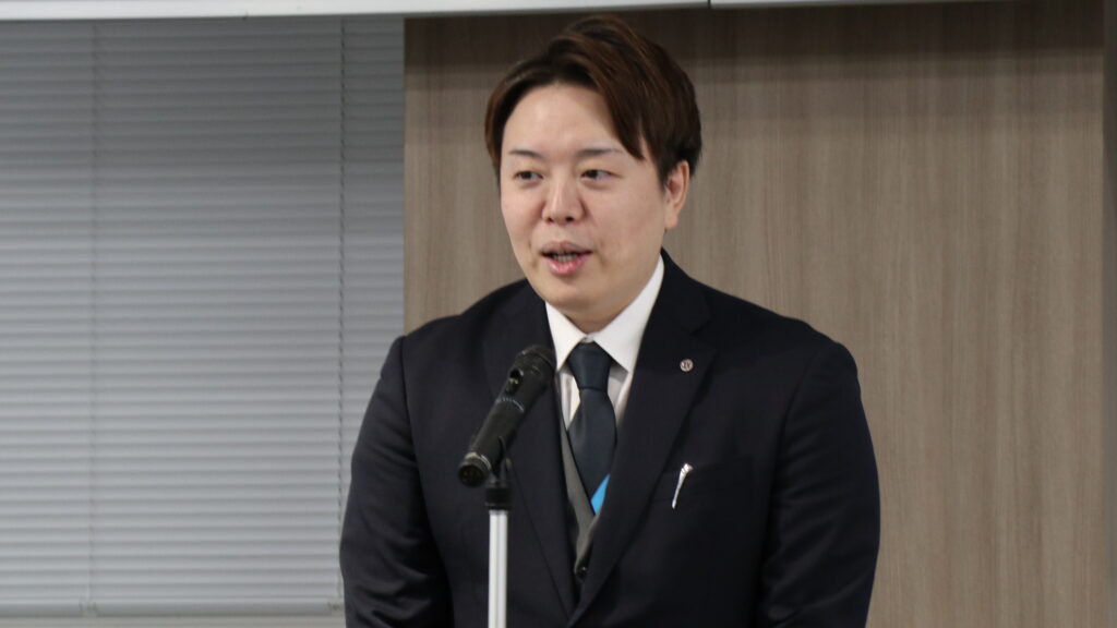 副会長候補として島田淳史(しまだ あつし)君、武田大輔(たけだ だいすけ)君、藤田淳君、村上史賢(むらかみ ふみとし)君。専務理事候補として藤森康容(ふじもり やすまさ)君が推薦され、会員の拍手による賛成表明にて令和8年度の副会長・専務理事が承認されました。