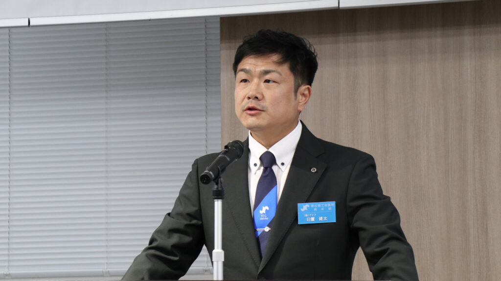 また、新入会員への徽章授与が行われ、3名の新入会員より今後のYEG活動への抱負を一言いただきました。今後の活躍から、会の大きな活性化が期待されます。