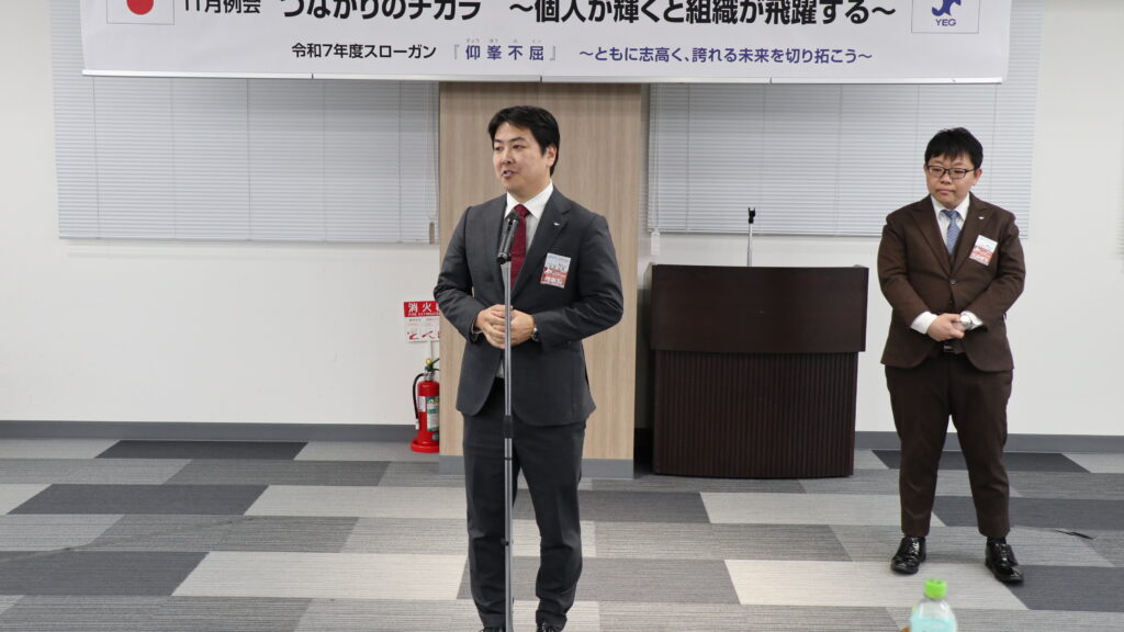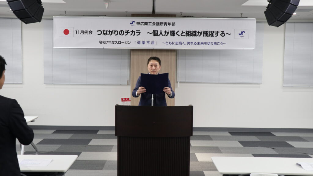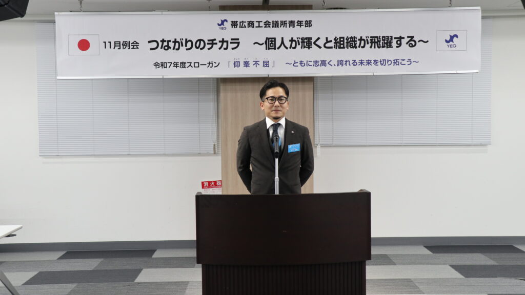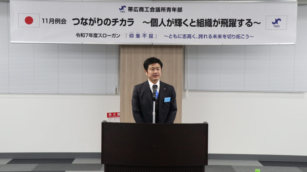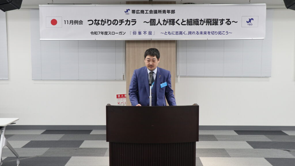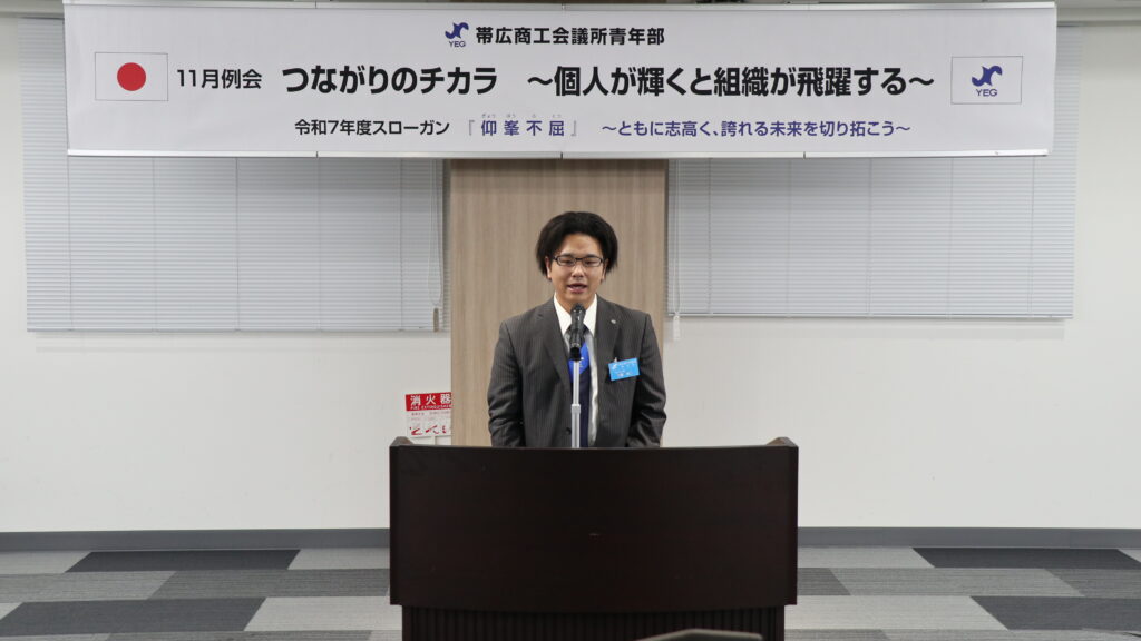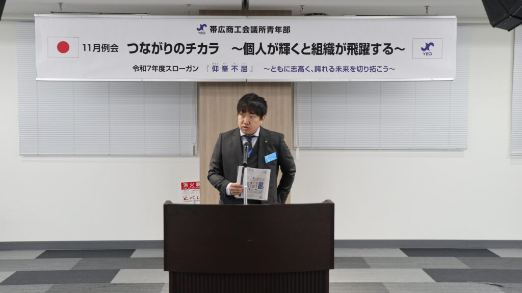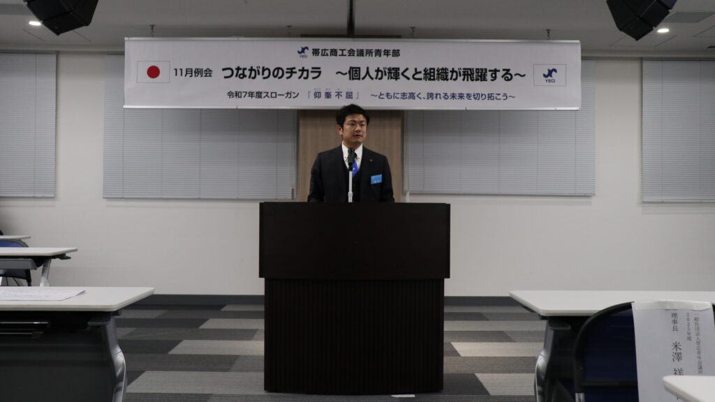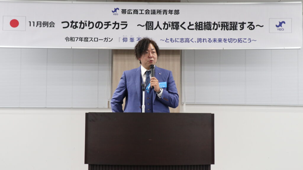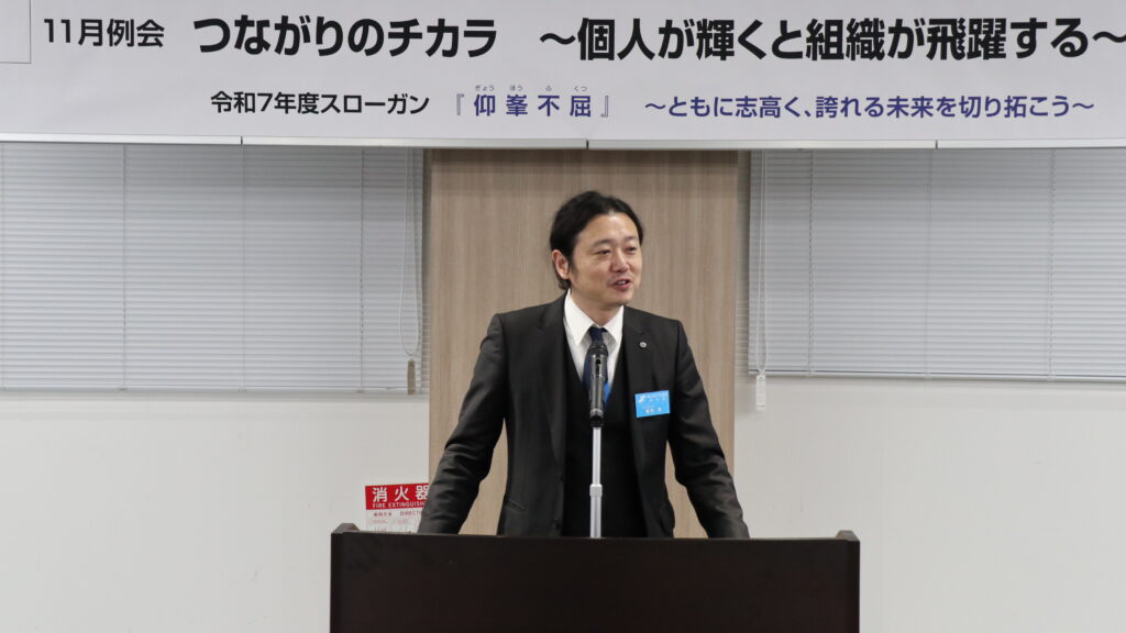 令和7年11月26日(水)に「令和7年度11月臨時総会」並びに11月例会「つながりのチカラ~個人が輝くと組織が飛躍する~」が帯広経済センタービルにて開催されました。