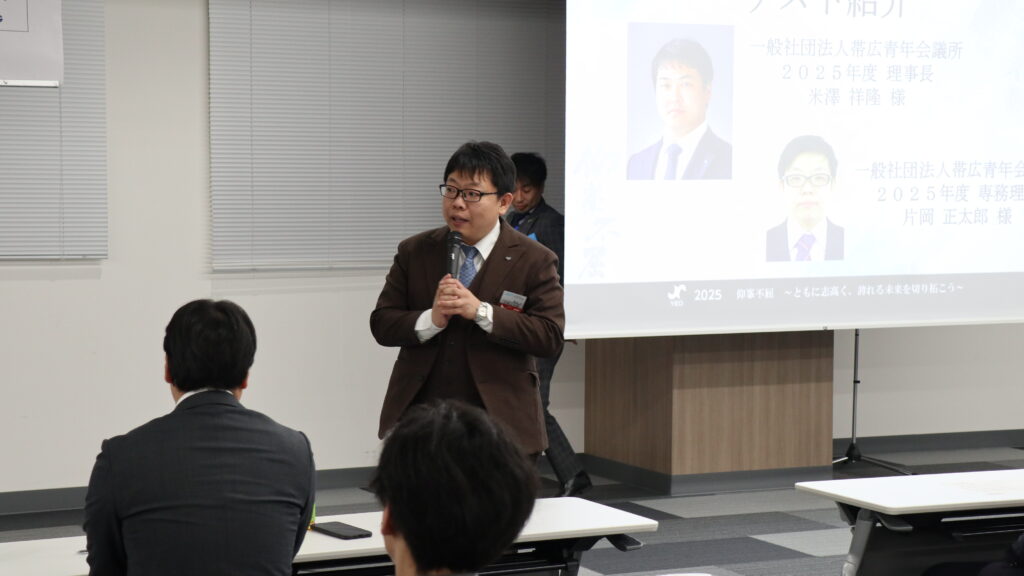 ゲストとして一般社団法人帯広青年会議所 2025年度理事長 米澤祥隆(よねざわ よしたか)様、2025年度専務理事 片岡正太郎(かたおか しょうたろう)様にお越しいただきました。